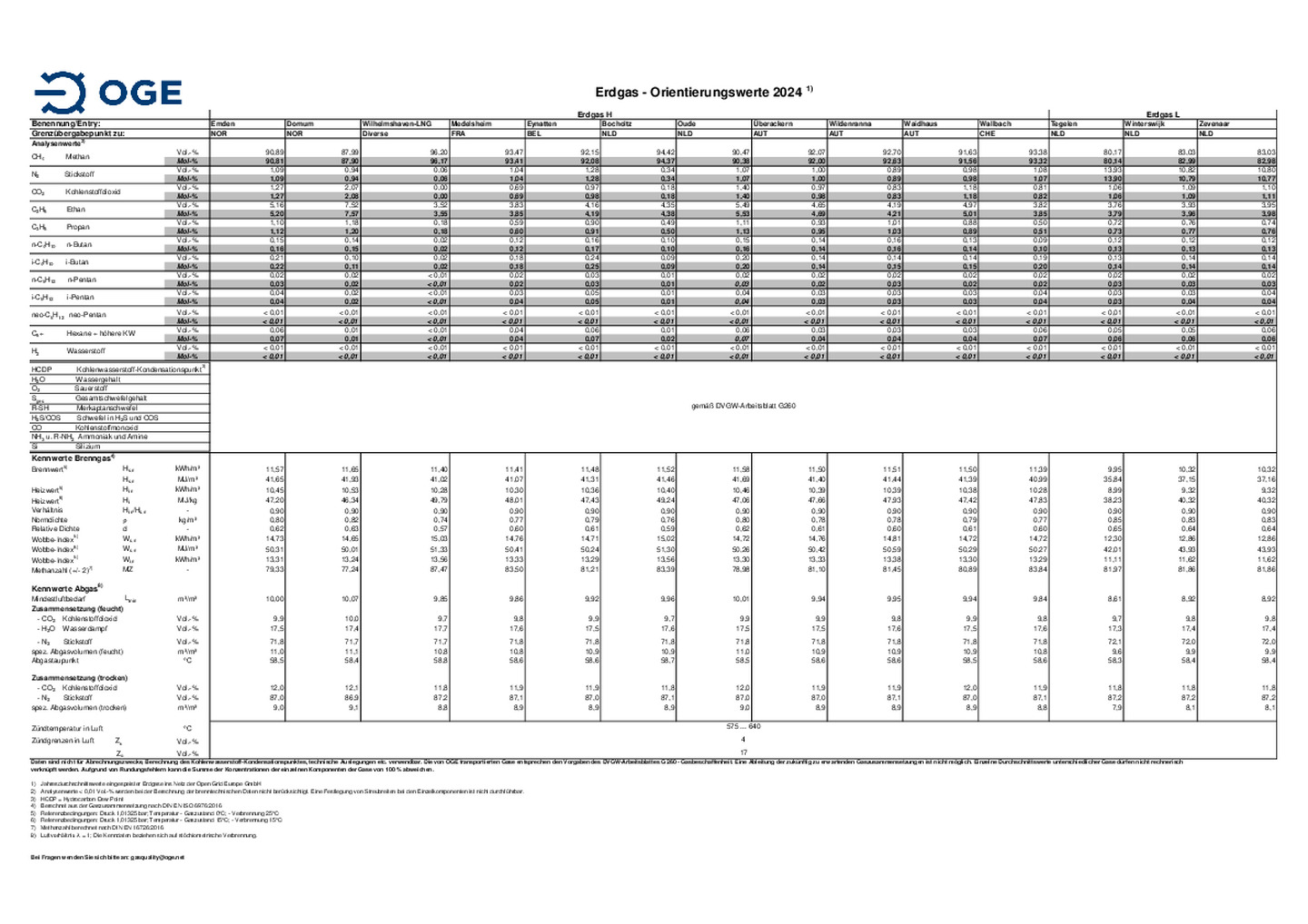 - Ermittlung der Erdgaszusammensetzung gemäß DVGW-Arbeitsblatt G 260