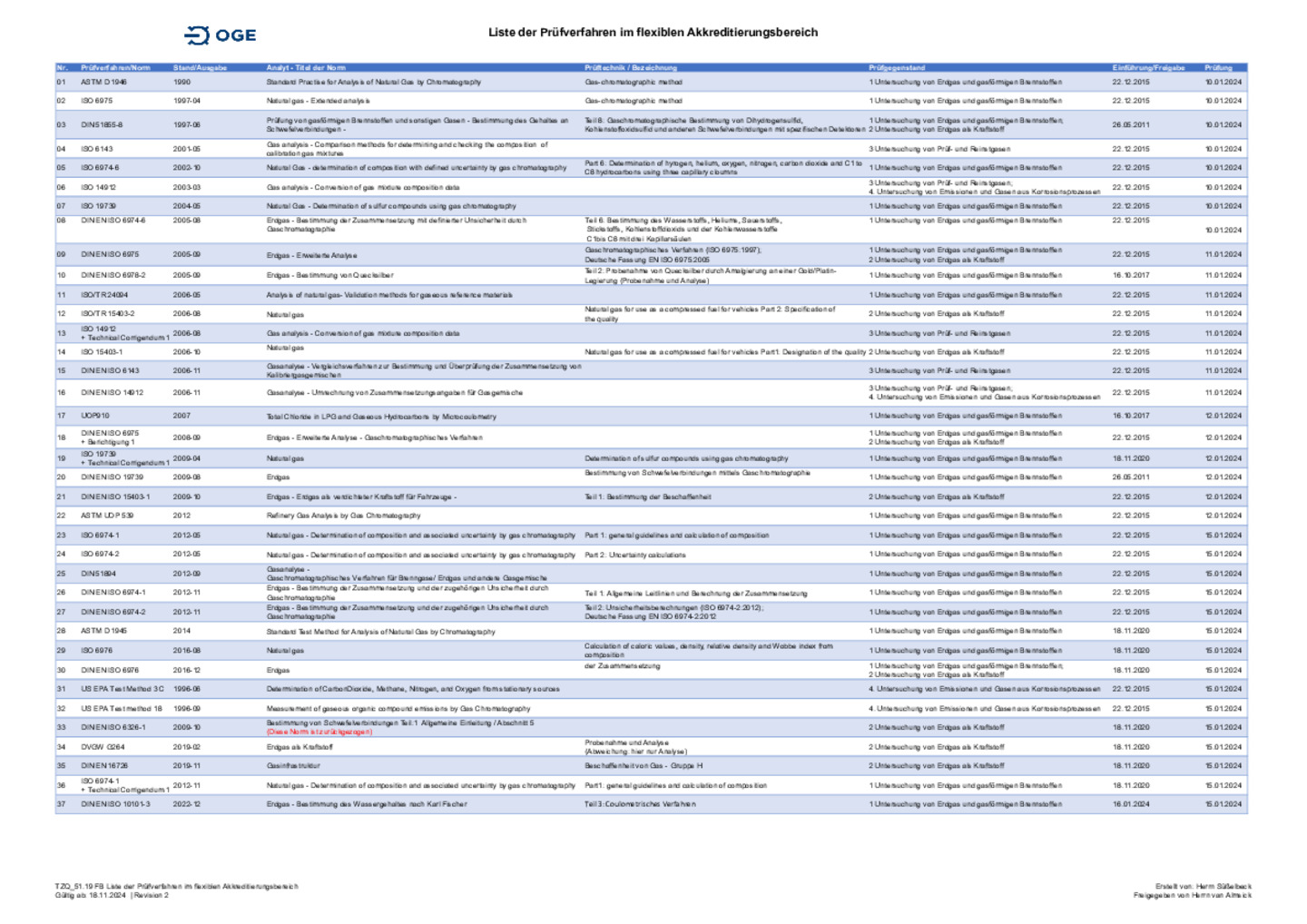 - Ermittlung der Erdgaszusammensetzung gemäß DVGW-Arbeitsblatt G 260