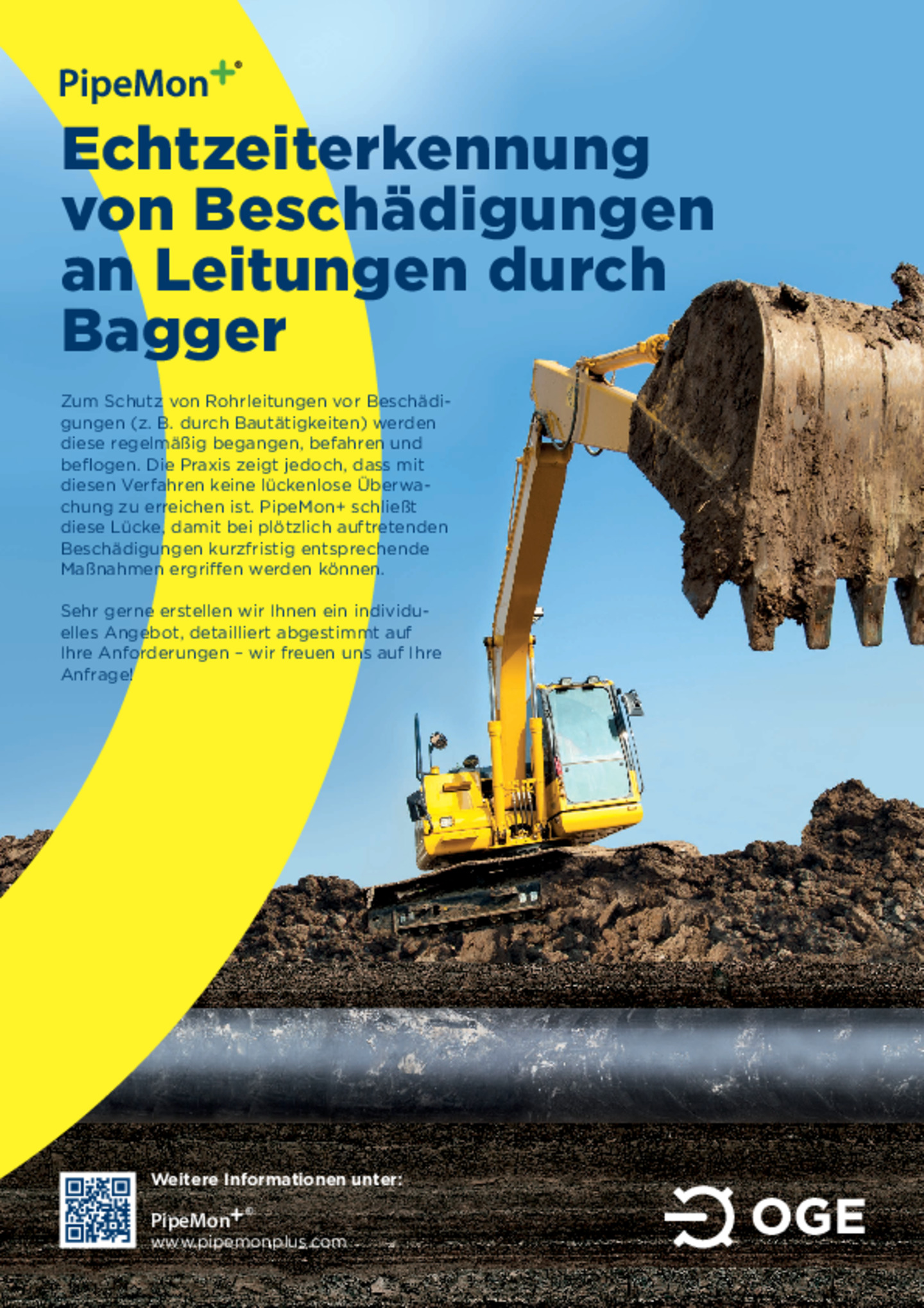 - Im Falle eines Baggerkontaktes mit der Leitung erfolgt eine Alarmierung des Betriebspersonals