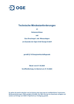 Die TMA umfassen neben den Netzanschlussbedingungen auch die verbindlichen Anforderungen sowie Ausführungsempfehlungen zur sicheren, effizienten und wirtschaftlichen Umsetzung technischer Regeln für …Errichtung, Änderung und Betrieb von Gas-Druckregel- und -Messanlagen am Gasnetz der Open Grid Europe GmbH. Stand 01.10.2024
