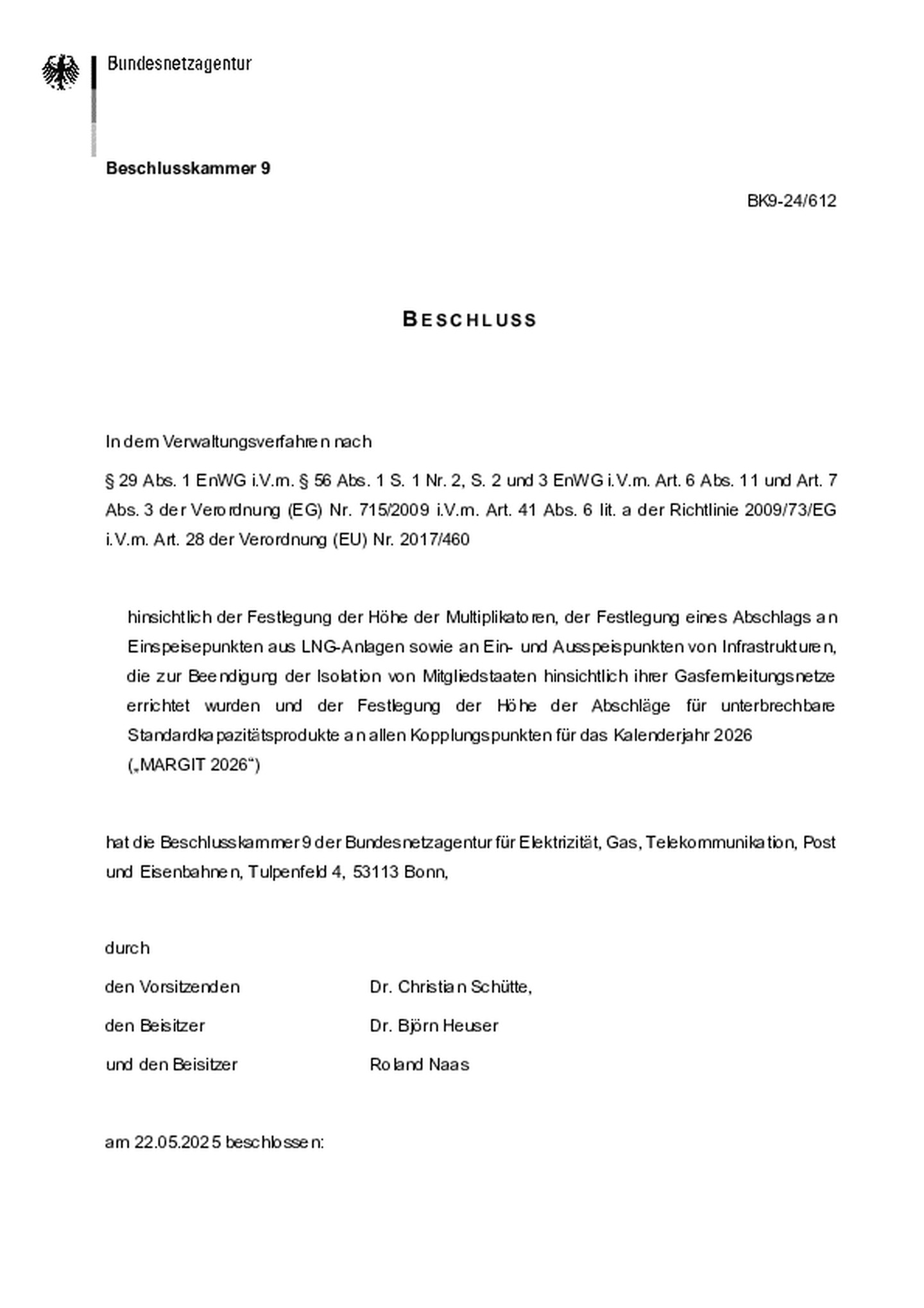 Veröffentlichung vor der Jahresauktion und der Entgeltperiode