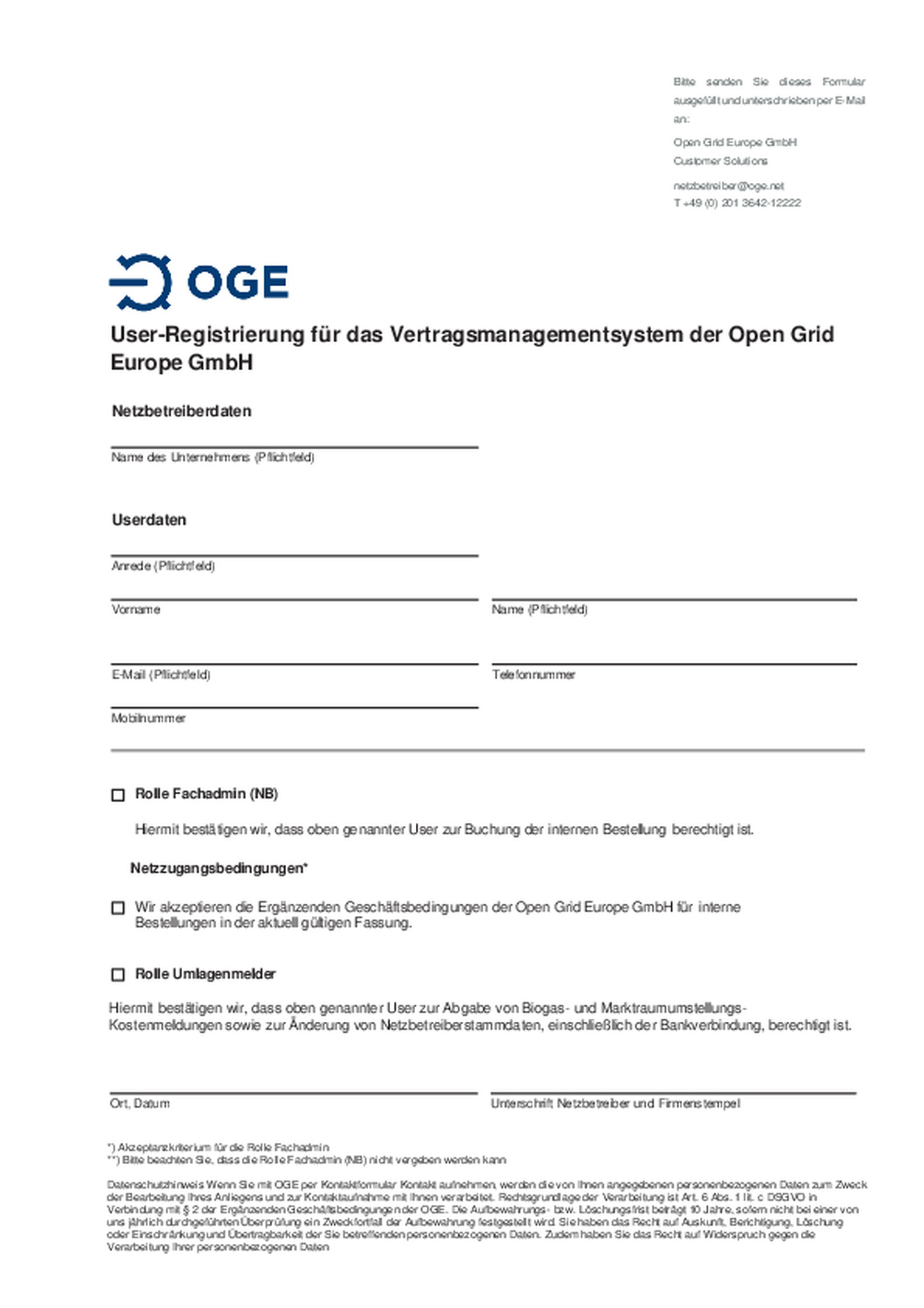 Transportkunden der OGE und nachgelagerte Netzbetreiber erreichen hier das Vertragsmanagementsystem (VMS OGE):