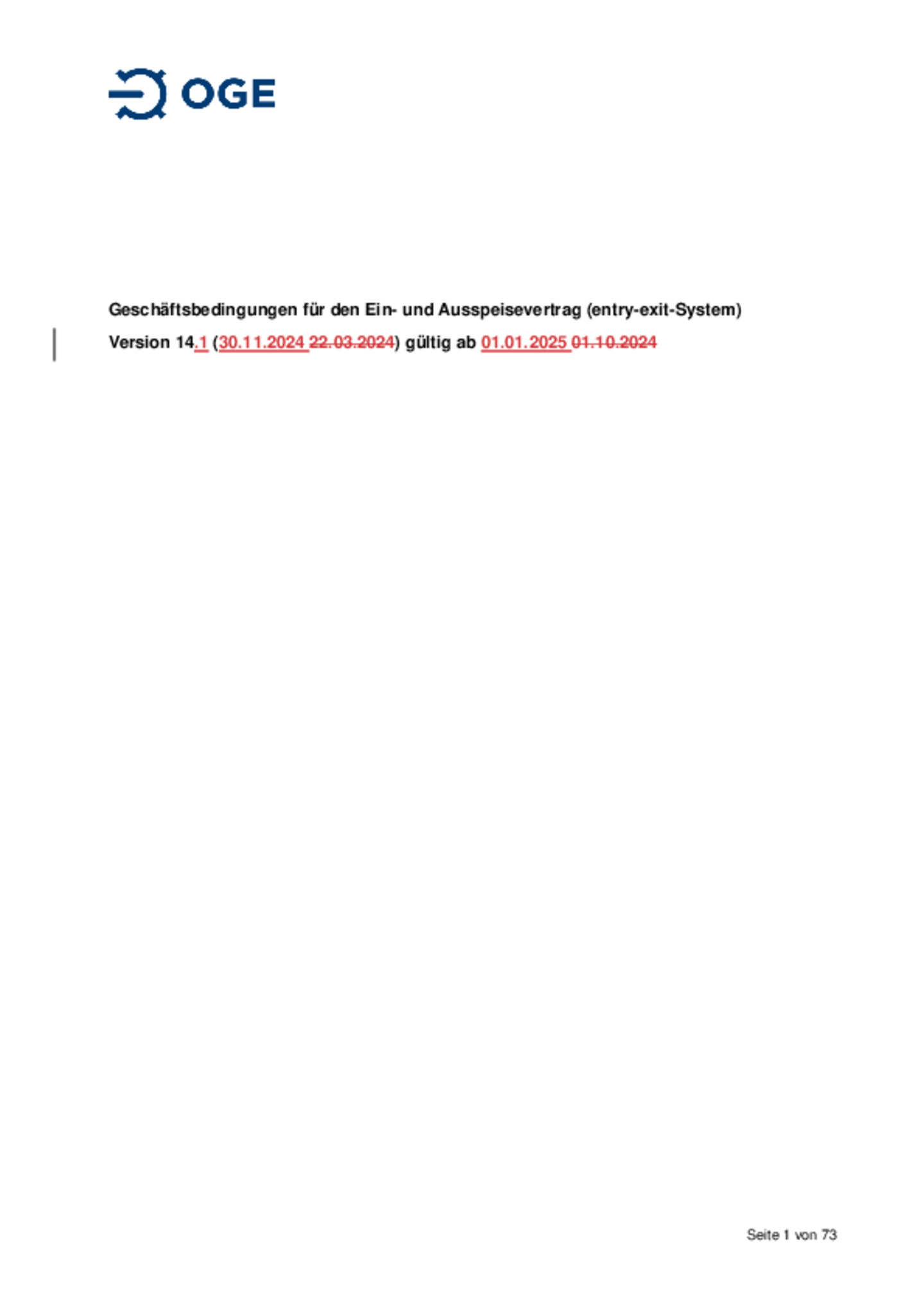Geschäftsbedingungen für den Ein- und Ausspeisevertrag (entry-exit-System), gültig ab 01.01.2025