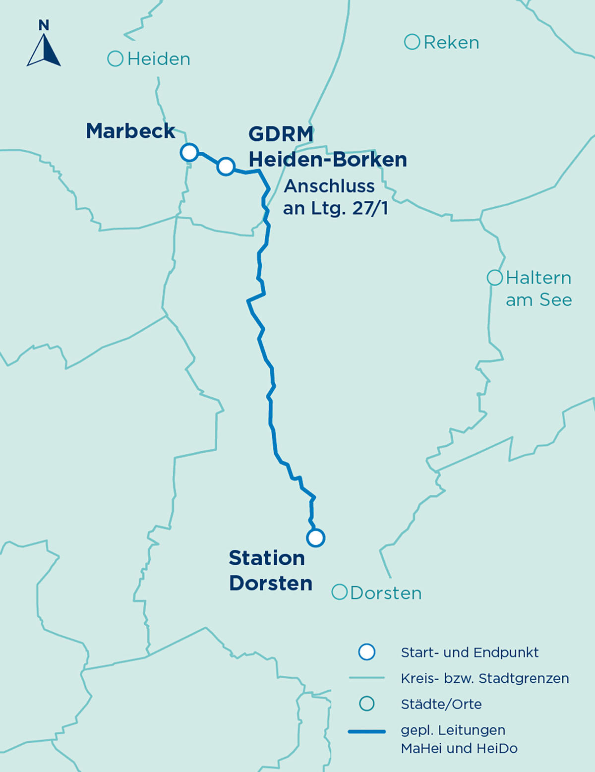 Die Leitungen MaHei (von Marbeck nach Heiden) und HeiDo (Heiden nach Dorsten) dienen zum einen der Umstellung von L- auf H-Gas, zum anderen als Erdgasersatzleitung für verschiedene H2-Projekte im Raum Dorsten.