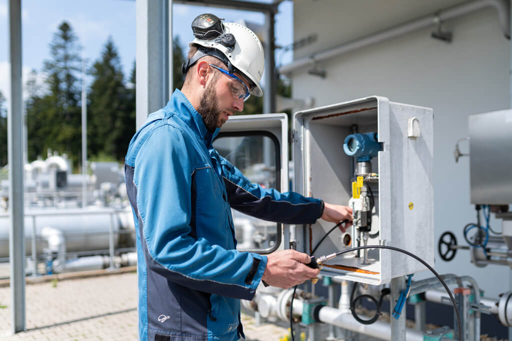 Gestern bin ich morgens um 7 Uhr hier an der Verdichterstation angekommen. Wir begannen mit einer Frühbesprechung zwischen dem Meister und mir als Vorhandwerker. Unsere Tagesplanung besprachen wir anschließend mit der Mannschaft, die aus sechs Kollegen besteht. Dann verteilten wir die Aufgaben: Wartung, Bauaufsicht, Arbeiten an den Leitungen. Ich selbst bin rausgefahren zu einer Baugrunderkundung. Mit Verantwortlichen einer externen Firma besprach ich die Arbeiten vor Ort, erstellte Arbeitsgenehmigungen und führte eine Sicherheitseinweisung durch. Der Arbeitstag hatte wieder diese abwechslungsreiche Mischung aus Bürozeit und Draußenzeit. Das gefällt mir immer besonders gut.