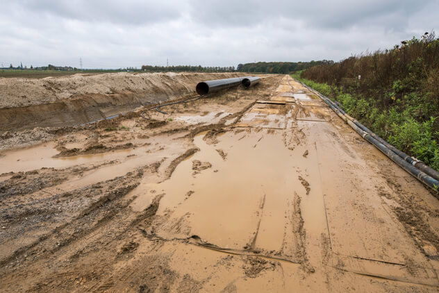 Um eine Pipeline zu verlegen, muss vorher Boden entnommen werden. Dabei legt aber nicht einfach ein Bagger los und gräbt Löcher. Der Umgang mit den Bodenschichten muss in Wochenberichten mit Fotos dokumentiert und der Behörde erläutert werden. Am Ende der Bauzeit muss an der Oberfläche alles aussehen und wachsen wie vorher.