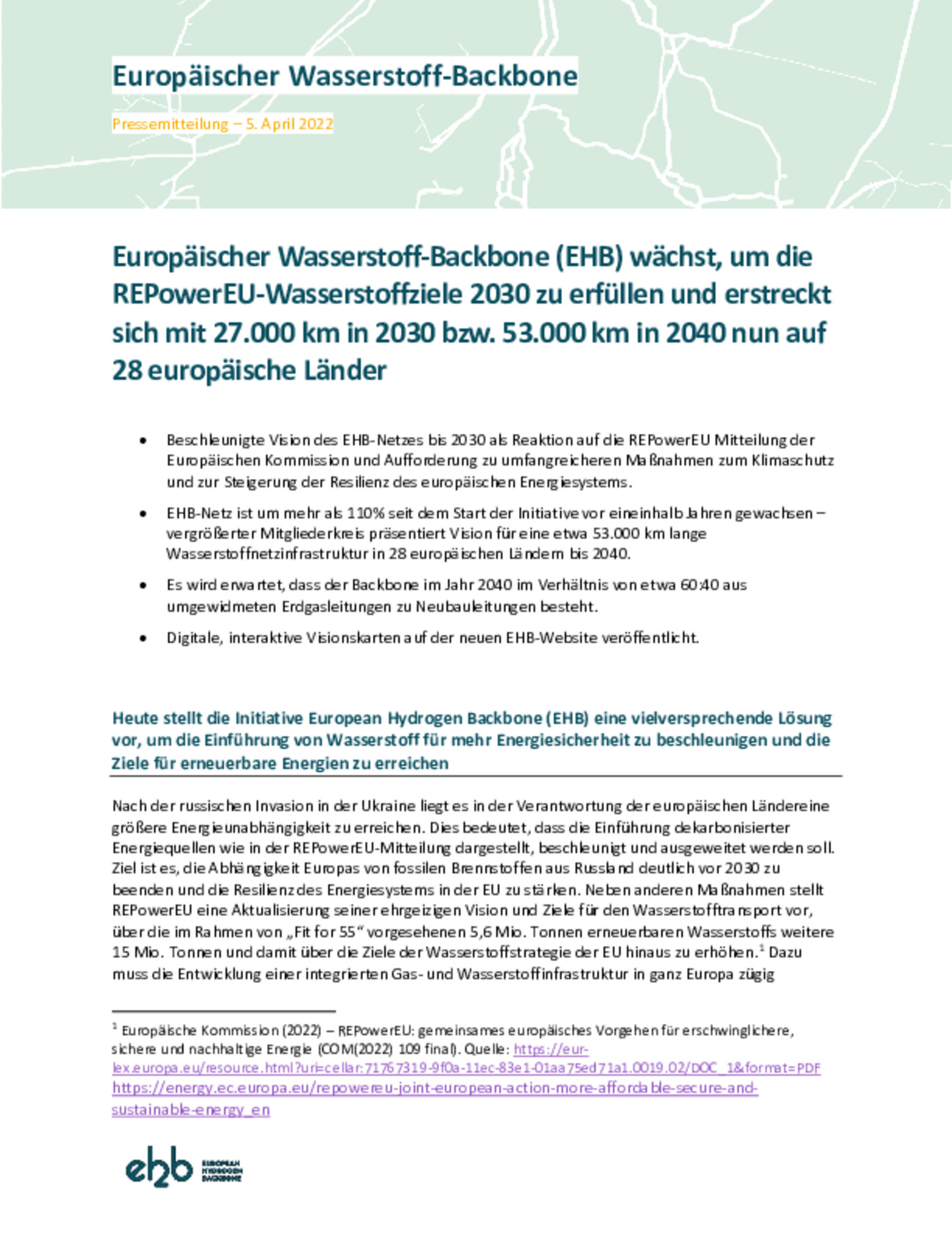 Die Initiative European Hydrogen Backbone (EHB) stellt eine vielversprechende Lösung vor, um die Einführung von Wasserstoff für mehr Energiesicherheit zu beschleunigen und die Ziele für erneuerbare …Energien zu erreichen.