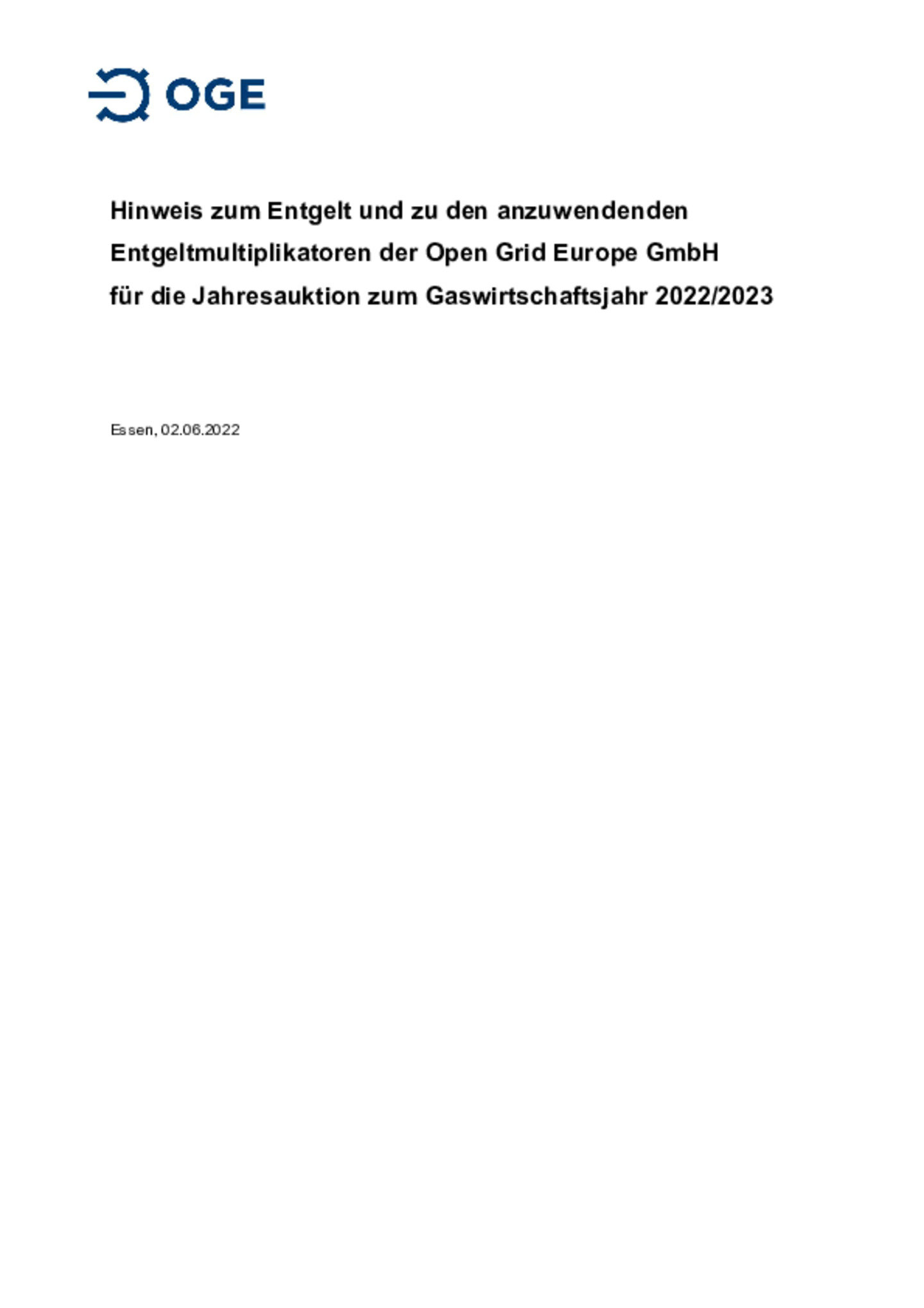 Für das Marktgebiet Trading Hub Europe (THE) haben die Fernleitungs-netzbetreiber auf Basis der Festlegung REGENT 2021 der Bundesnetza-gentur (BNetzA) das Netzentgelt ab 01.01.2023 ermittelt.