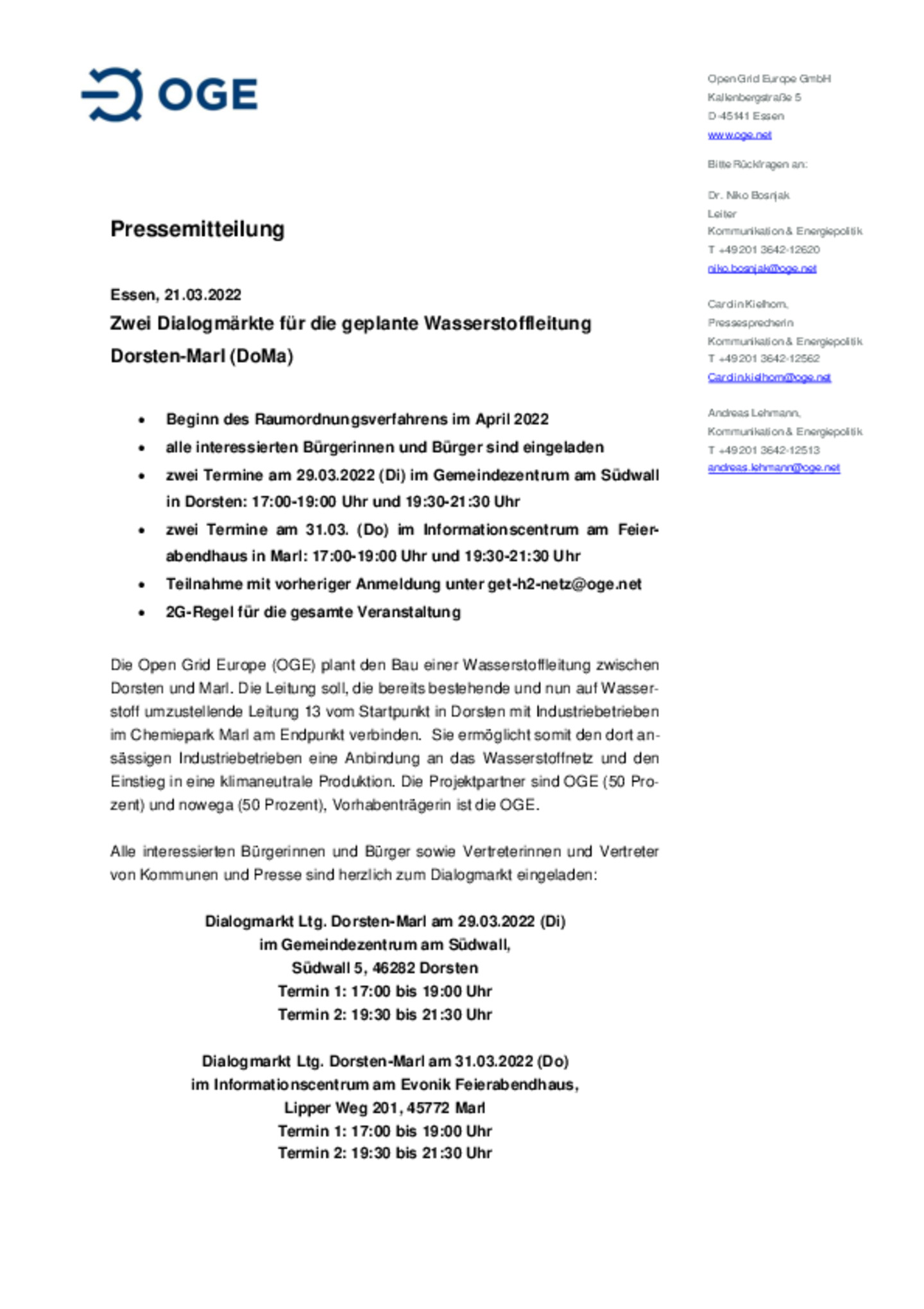 Dialogmarkt für die geplante Wasserstoffleitung Heek-Epe