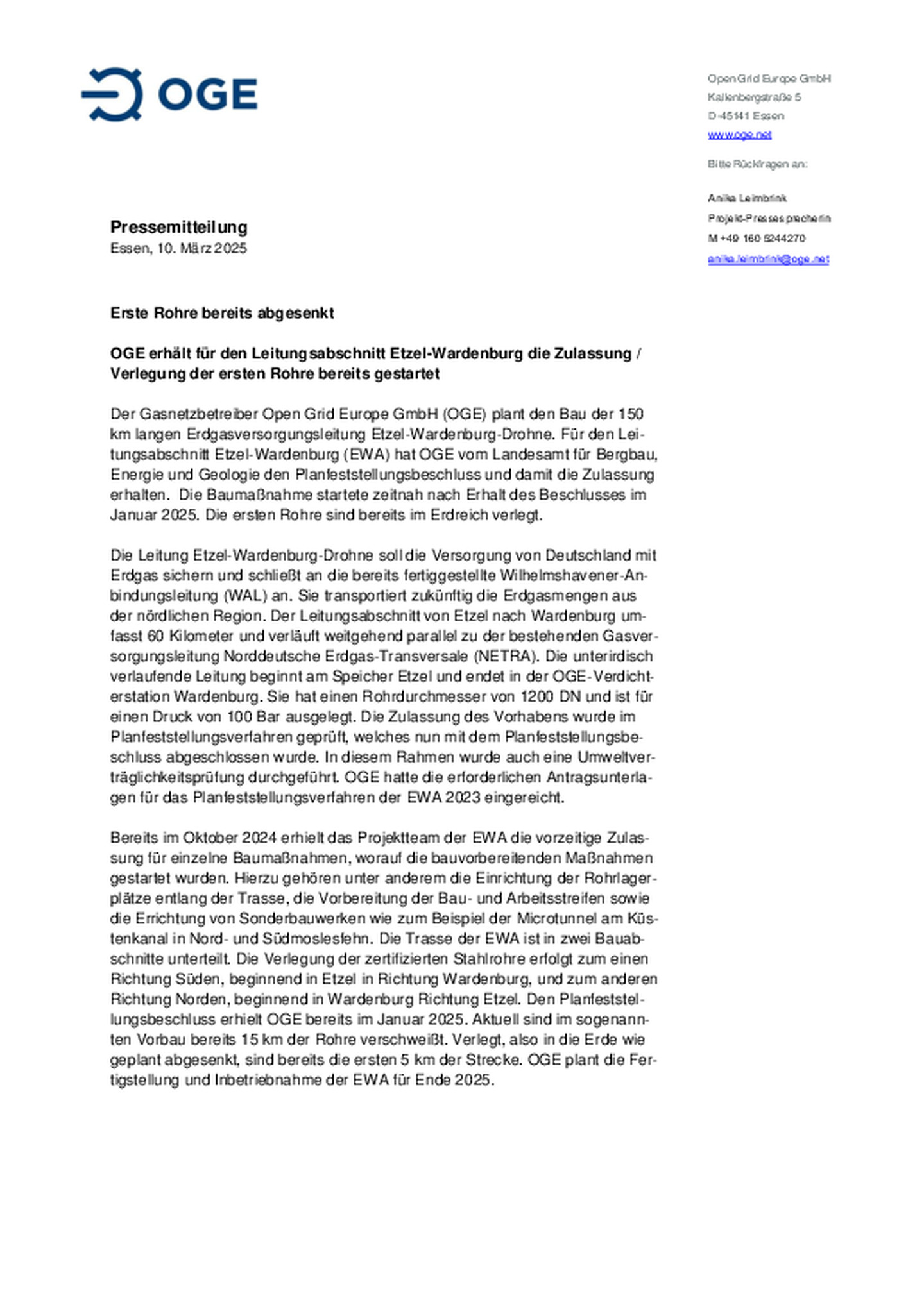 Gemeinsam mit Essens Oberbürgermeister Thomas Kufen (vorne rechts) eröffnete OGE-Geschäftsführerin Nathalie Leroy (2. v. r.), Betriebsrat Önder Ata sowie Jonas Fauser, Leiter der technischen …Ausbildung (3. u. 4. v. r.) zusammen mit aktuellen Auszubildenden von OGE und weiteren Gästen die neue Zukunftswerkstatt. Diese bietet für die technische Ausbildung neue Möglichkeiten.