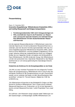 Innovative Doppelleitung: Wilhelmshaven-Küstenlinie (WKL) soll künftig Wasserstoff und Erdgas transportieren