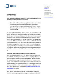 OGE hat offiziell die Planfeststellungsunterlagen für die – auch für den perspektivischen Transport für Wasserstoff geeignete – Erdgasleitung Marbeck-Heiden bei der Bezirksregierung Münster …eingereicht.