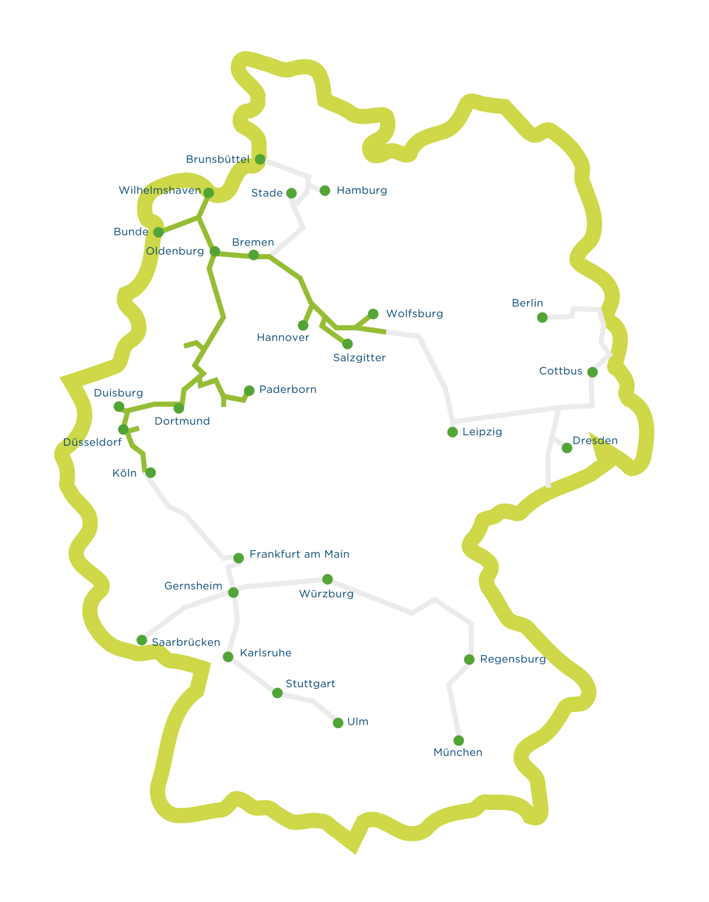 OGE, einer der führenden europäischen Fernleitungsnetzbetreiber, plant den Bau eines CO2-Transportnetzes. Der Fokus liegt dabei auf CO2-Emissionen, die im Produktionsprozess nicht vermieden werden können, sowie auf der Wiederverwendung von CO2 in einem grünen, geschlossenen Kreislaufsystem zum Import von grünem Wasserstoff. Dieses Netz wird zunächst 1.000 km lang sein und ein Transportvolumen von rund 18 Millionen Tonnen CO2 pro Jahr ermöglichen.