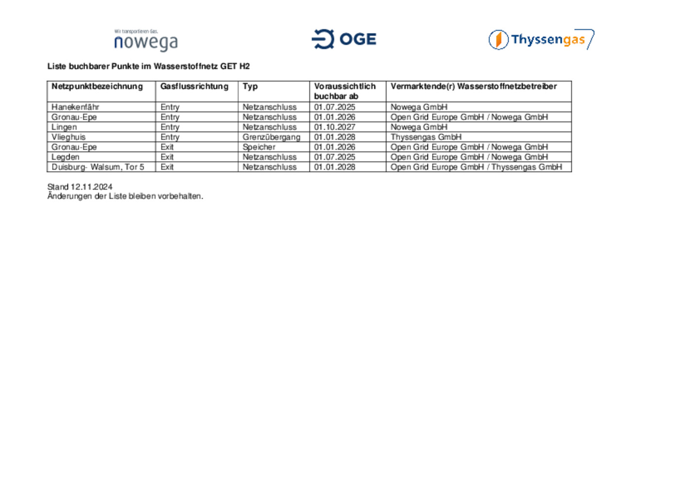 der Wasserstoffnetzbetreiber Nowega GmbH, Open Grid Europe GmbH und Thyssengas GmbH vom 23.06.2025