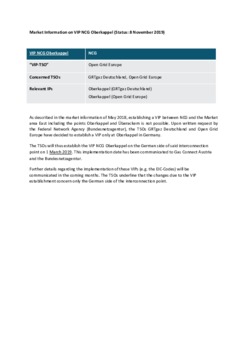 The TSOs will thus establish the VIP NCG Oberkappel on the German side of said interconnection point on 1 March 2019. This implementation date has been communicated to Gas Connect Austria and the BNetzA.