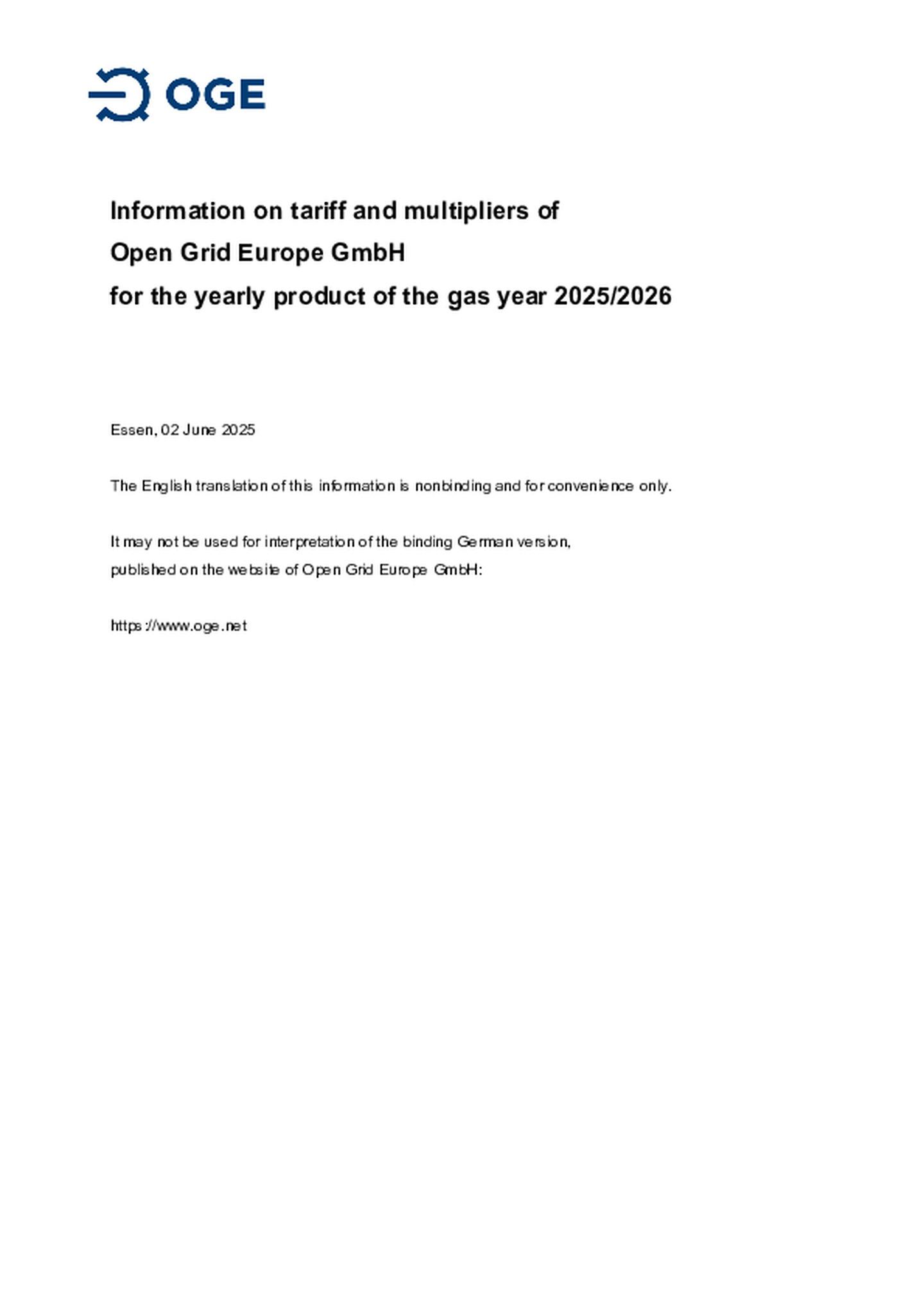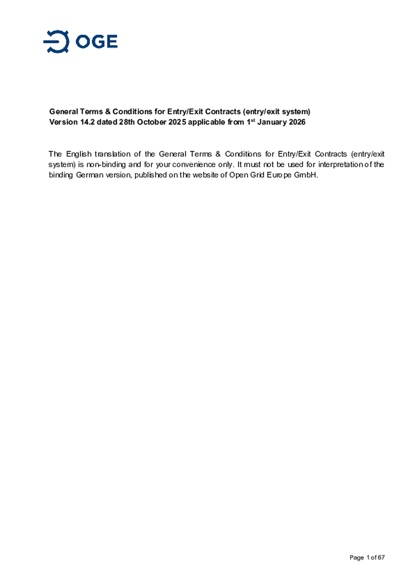 Supplementary Terms and Conditions of Open Grid Europe GmbH