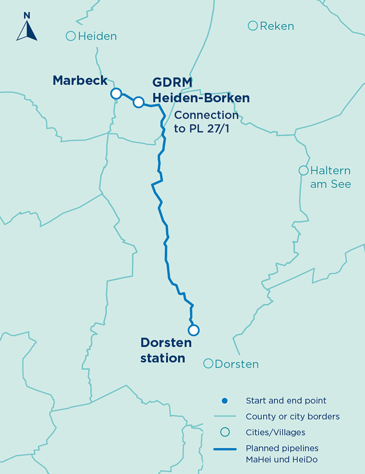 The MaHei (Marbeck to Heiden) and HeiDo (Heiden to Dorsten) pipelines are needed for the conversion of the local service area from L-gas to H-gas and they can also be used for various H2 projects in and around Dorsten.