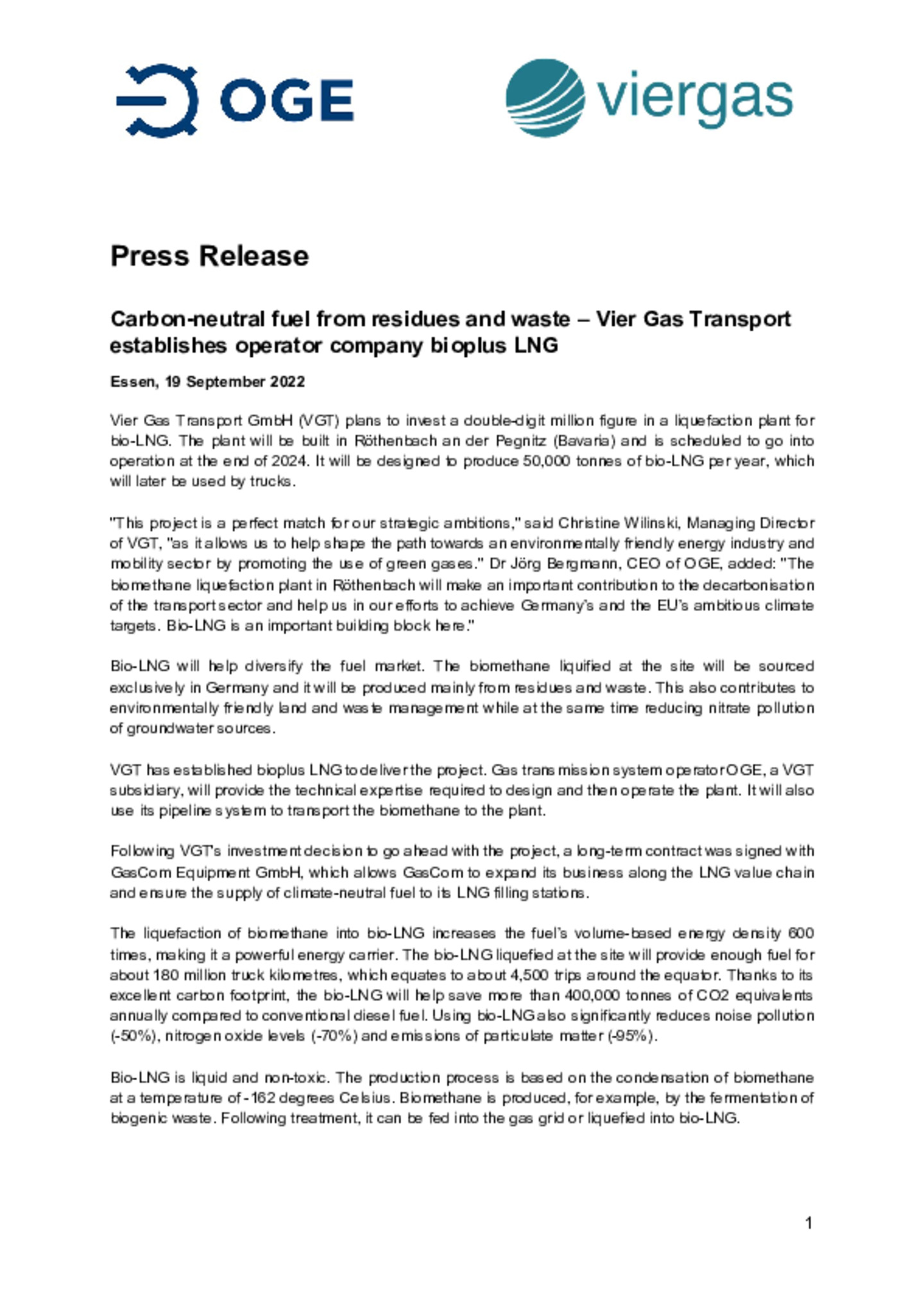 Signing of the liquefaction contract between bioplus LNG represented by its Board members Christine Wilinski and Michael Kranich and GasCom represented by Norbert Scholz Managing Partner and Matthias… Hoffmann Deputy Technical Managing Director.