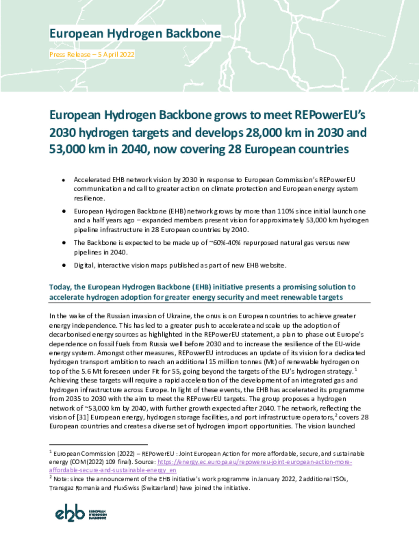 The European Hydrogen Backbone (EHB) initiative presents a promising solution to accelerate hydrogen adoption for greater energy security and meet renewable targets.