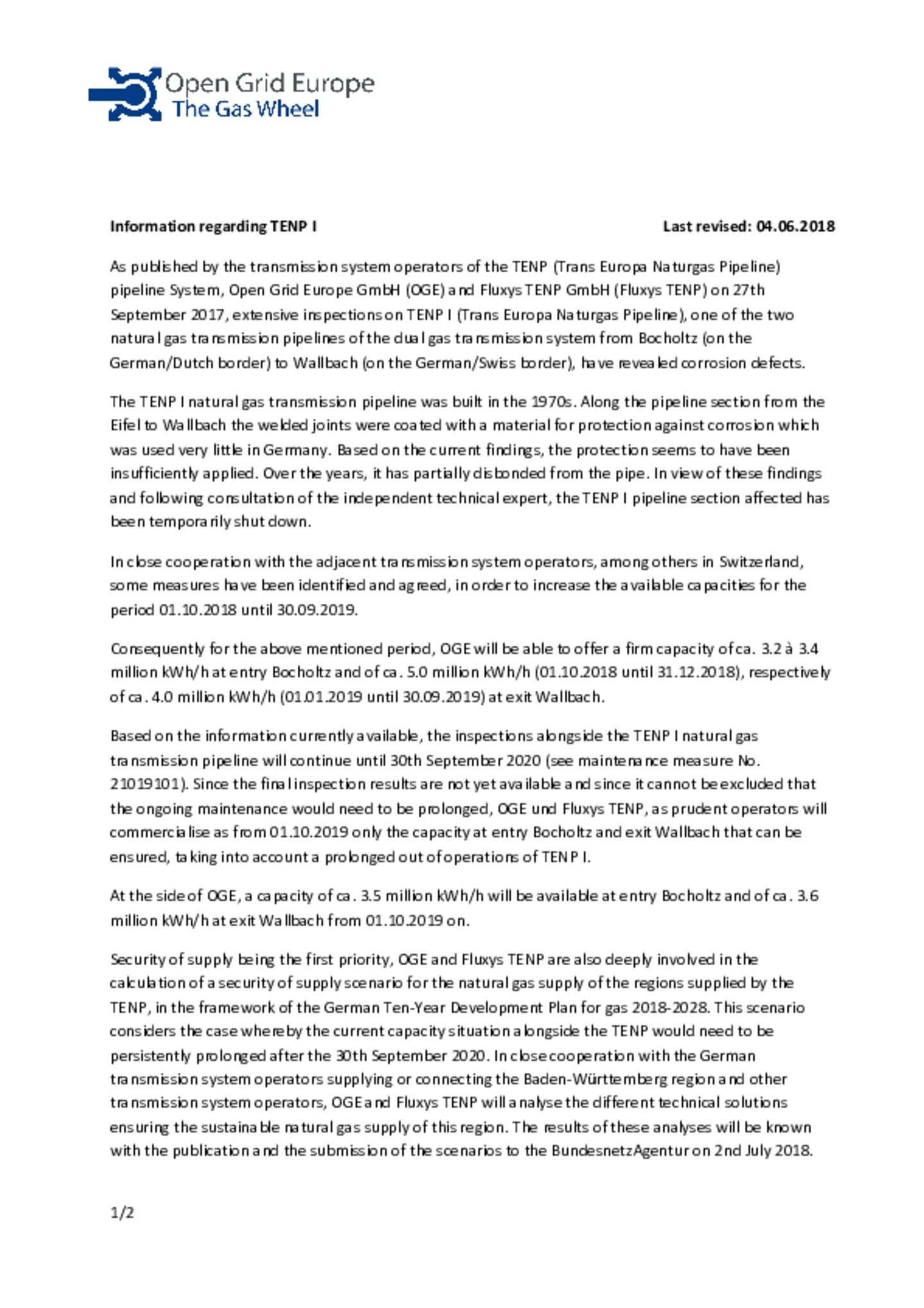 NCG Price sheet of Open Grid Europe GmbH 2018