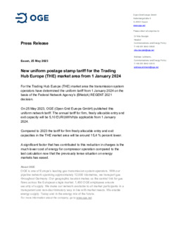 New uniform postage stamp tariff for the Trading Hub Europe (THE) market area from 1 January 2024