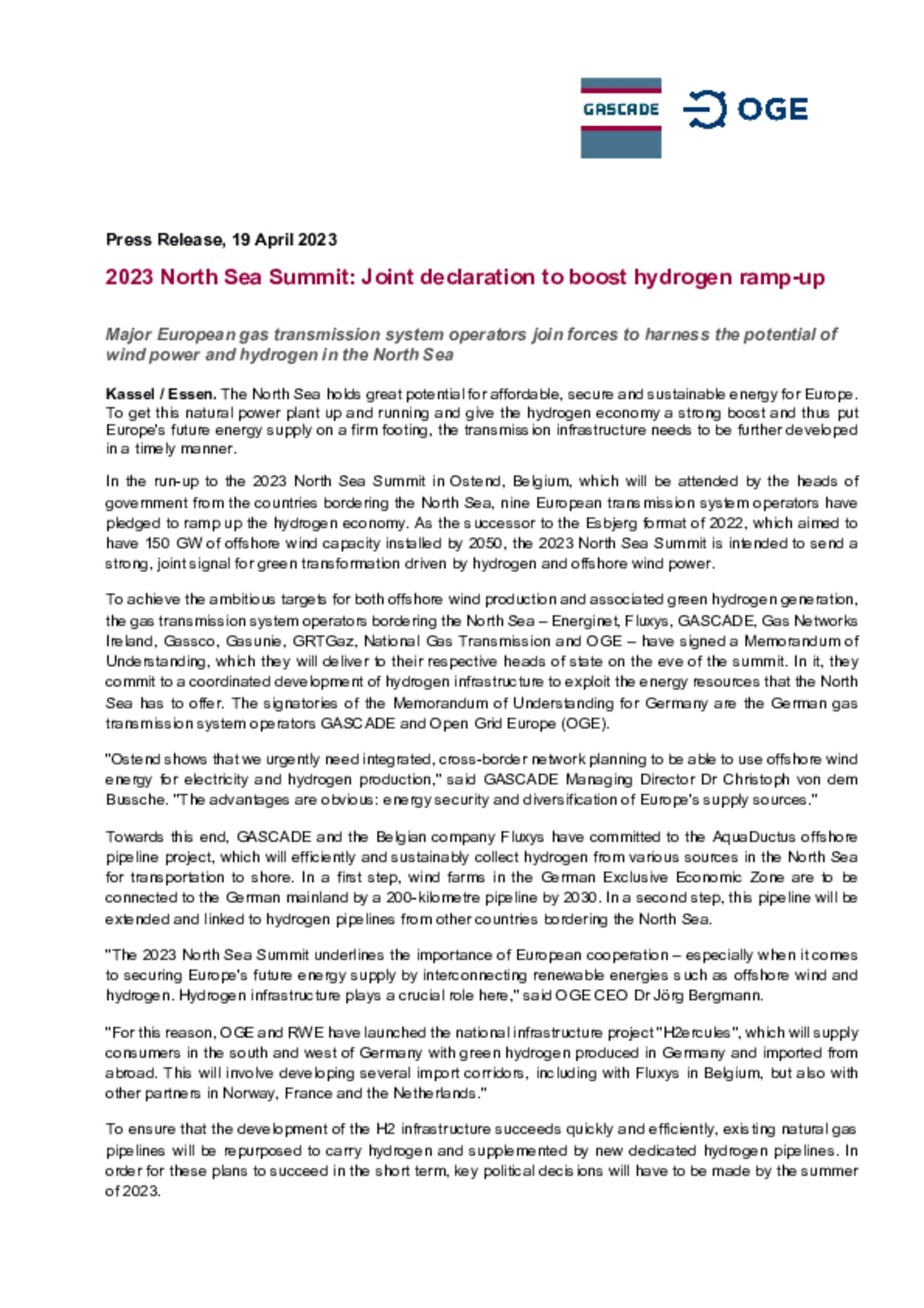 From left: Olaf Lies (Minister of Economics of Lower Saxony), Franz-Josef Kissing (Project Manager OGE), Thomas Hüwener (Member of the Management Board OGE), Morten Höegh (Shipping company Höegh), …Christian Lindner (Federal Minister of Finance), Siemtje Möller (Parliamentary State Secretary in the Federal Ministry of Defence), Niels Fenzl (Project Manager Uniper), Olaf Scholz (Federal Chancellor), Stephan Weil (Minister President of Lower Saxony), Holger Banik (Managing Director Niedersachsen Ports), Robert Habeck (Federal Minister of Economics), Christian Meyer (Minister of the Environment of Lower Saxony), Carsten Feist (Mayor of Wilhelmshaven)