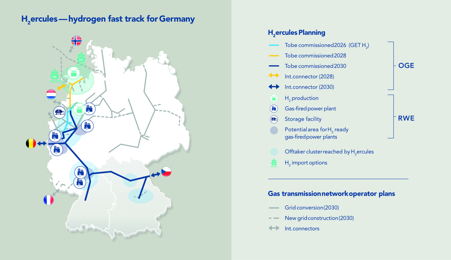 Hydrogen fast track: OGE and RWE present national infrastructure concept “H₂ercules”